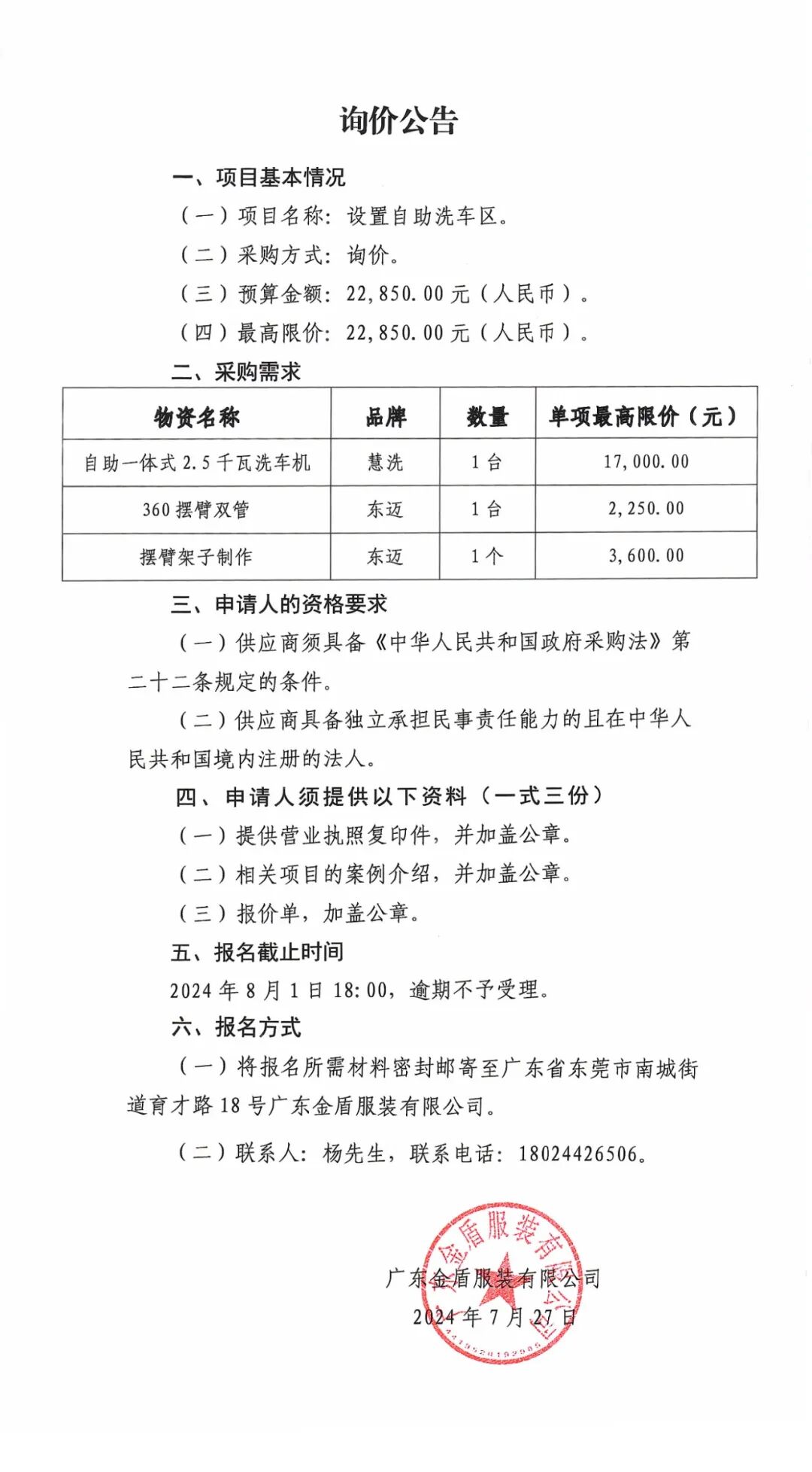 關于設置自助洗車區(qū)的詢價公告